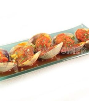 Almejas con salsa de tomate casera picante