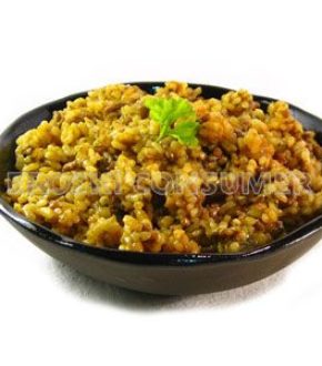 Una vez cocinada la carne, agregamos el arroz a la cazuela mezclándolo con la carne estofada.