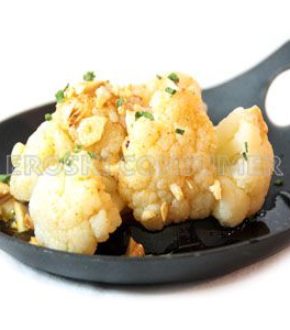 Ponemos la coliflor en cuatro platos y salseamos con el refrito.