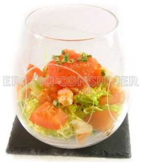 Salseamos por encima de la ensalada y decoramos con perejil picado y la mitad de las gambas, langostinos y pomelo que habíamos reservado.