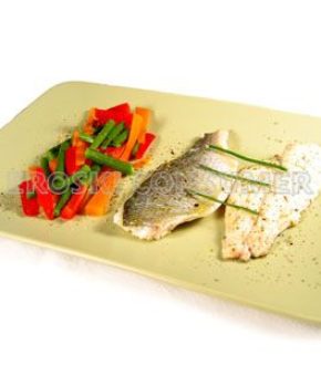 Servimos los lomos de dorada junto con las verduras cocinadas.