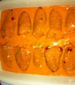 Ingredientes: 1 Cebolla 1 Pimiento verde 200gr Bacalao Bechamel 1 o 2 latas de Pimientos de piquillo Aceite Elaboración: Pica una cebolla y un pimiento verde y ponlos en una sartén a fuego lento con un poco de aceite. Cuando este pochado, añade el bacalao desalado y desmigado, y saltéalo unos minutos. Mézclalo con 4 cucharadas de bechamel. Con esta mezcla rellenamos los pimientos de piquillo. Para la salsa: trituramos 4 pimientos de piquillo junto a un poco de bechamel. Una vez este la salsa, se la echamos por encima de los pimientos, de forma que se cubra el pimiento. Por último, los metemos un ratito al horno, para que estén completamente calientes. Podéis hacerlos horas antes y meterlos en el horno antes de comerlos.