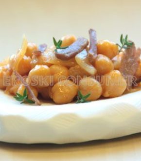 Los garbanzos son ricos en vitamina K y B9, y presentan un destacado contenido en magnesio. Es una legumbre muy rica en nutrientes como el zinc, potasio, hierro, yodo, fósforo y fibra. Es también fuente de vitaminas A, B3, B5, C y E. En esta receta, se prepara con patata, que aporta vitaminas B3, B5, B6, B9, C y K, además de carbohidratos. La ternera, por su parte, suma al plato grandes cantidades de zinc, así como proteínas de elevado valor biológico, hierro, calcio, potasio, yodo, fósforo y vitaminas A, B3, B6, B9, B12 y K. Es una receta algo grasa, pero recomendable si se consume con moderación.