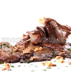 Machacamos el ajo con el perejil, la sal y el aceite de oliva haciendo un «majado» con ayuda de un robot de cocina o con un almirez. Utilizamos un pincel de cocina para untar las setas con aceite de oliva aromatizado con ajo y, en una plancha caliente, comenzamos a cocinarlas por la parte superior. Cuando estén semi cocinadas agregamos un poco del ajo machacado con el perejil y la sal, les damos la vuelta y dejamos que se terminen de hacer (siempre controlando la temperatura, para que se cocine la seta y no se queme el ajo). En este punto se puede suavizar la cocción añadiendo un toque de vino blanco a la plancha, que impedirá que el ajo se queme y ayudará a caramelizar los jugos