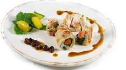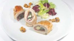 Pechugas de pavo rellenas de queso de cabra y espárrago con jamón