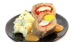 Rollo de carne con salsa de cebolla