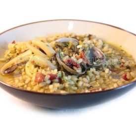 Arroz integral con almejas y calamares