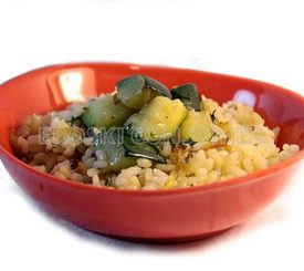 Rissoto de arroz con guisantes y calabaza
