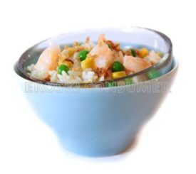 Arroz con gambas, guisantes y maíz