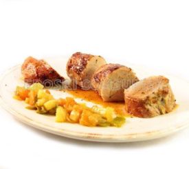 Conejo relleno de membrillo y ciruelas pasas con salsa del asado