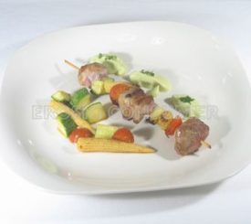 Cordero a la cazuela, cebolla confitada y ensalada de escarola y granada