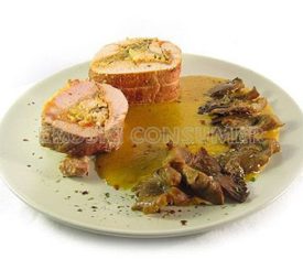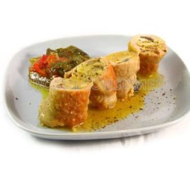 Rollitos de lomo rellenos de revuelto de setas y queso