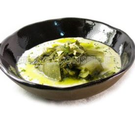 Cazuela de cardo con refrito de jamón y ajo