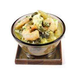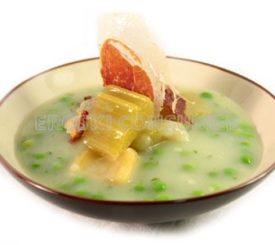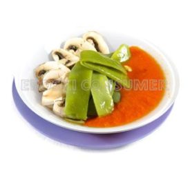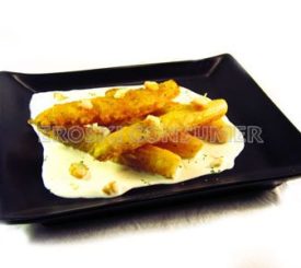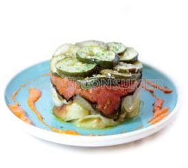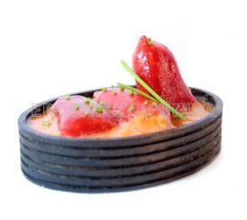 Brocheta de hortalizas con crema de albaricoque y ciruela